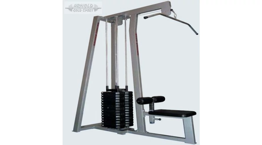 Kondigépünk a hát izomzatának edzésére mellett a tricepsz izmok erősítésére szolgál a több pozícióban fogható széles rúddal való lehúzás által.