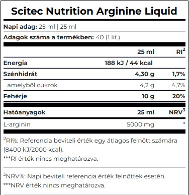 Oldjon fel naponta egy adag (25 ml) Arginine Liquid-t 250 ml vízben 30 perccel edzés előtt. Használat előtt jól felrázandó!