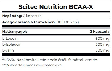 A Leucin, Izoleucin és Valin elengedhetetlen aminosavak, amelyek kevert étkezési proteinforrásokból bevihetőek, többféle forrásból. A BCAA szükséglet fedezhető étrend-kiegészítőkkel is. A BCAA-X 2:1:1 arányban tartalmaz Leucint, Izoleucint és Valint kényelmes, pontosan kimért, kapszulás formában!