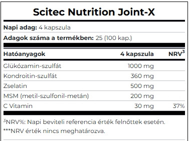 - Glükozamin-szulfát, kondroitin-szulfát, zselatin, MSM hatóanyagokkal