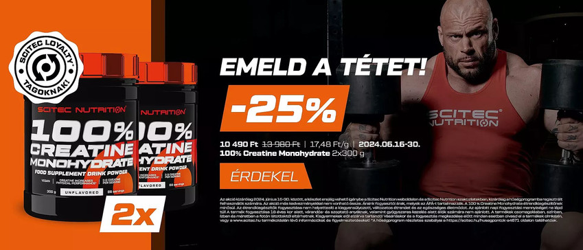 AKCIÓ: 100% Creatine Monohydrate 2 x 300g kiszerelésben 25% kedvezmény!