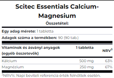 - 500 mg kalcium, 250 mg magnézium tablettánként